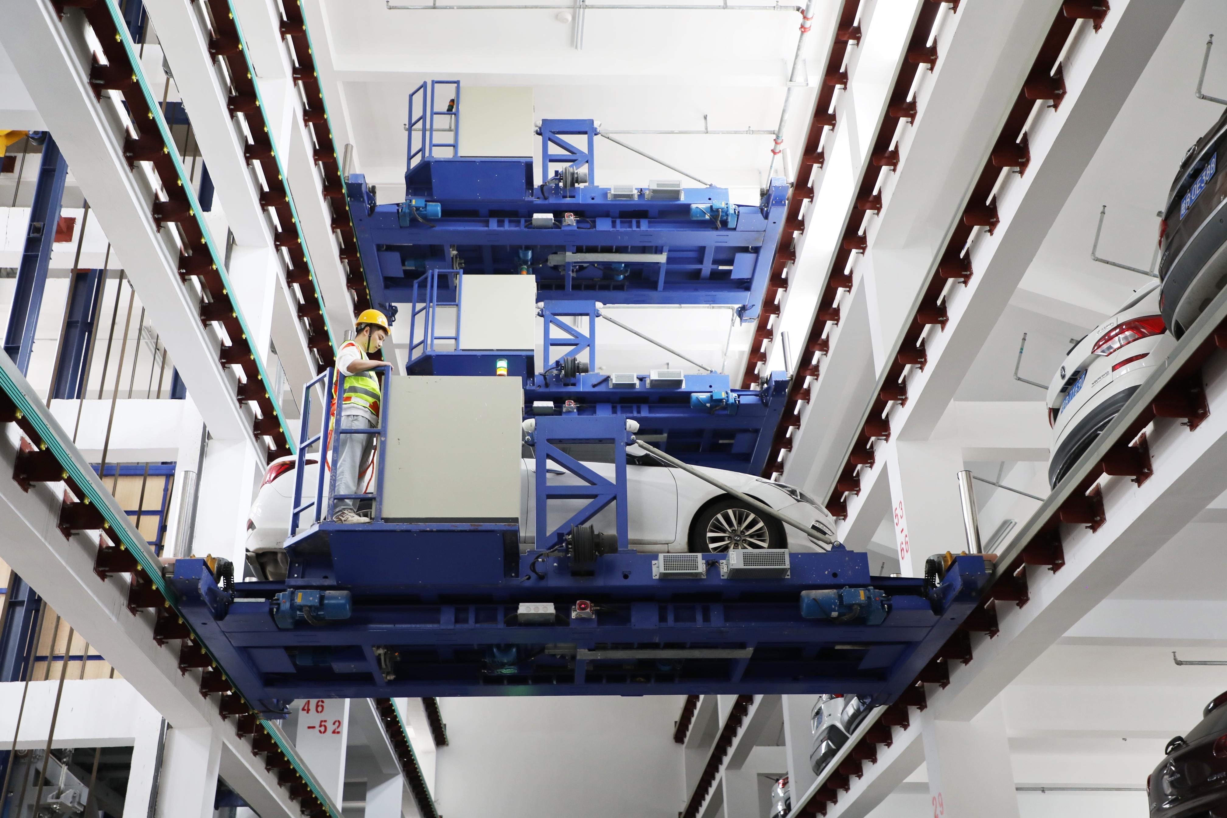 在芜湖陡门巷智能停车楼,当车主将车辆停进停车楼一层车位离开后,在自助操作屏点击“开始存车”,智能停车系统将通过校正、识别、分类等操作,按序把车辆整齐停放入位。车主取车时也只需点击“开始取车”,输入车牌号,便可快速完成取车。