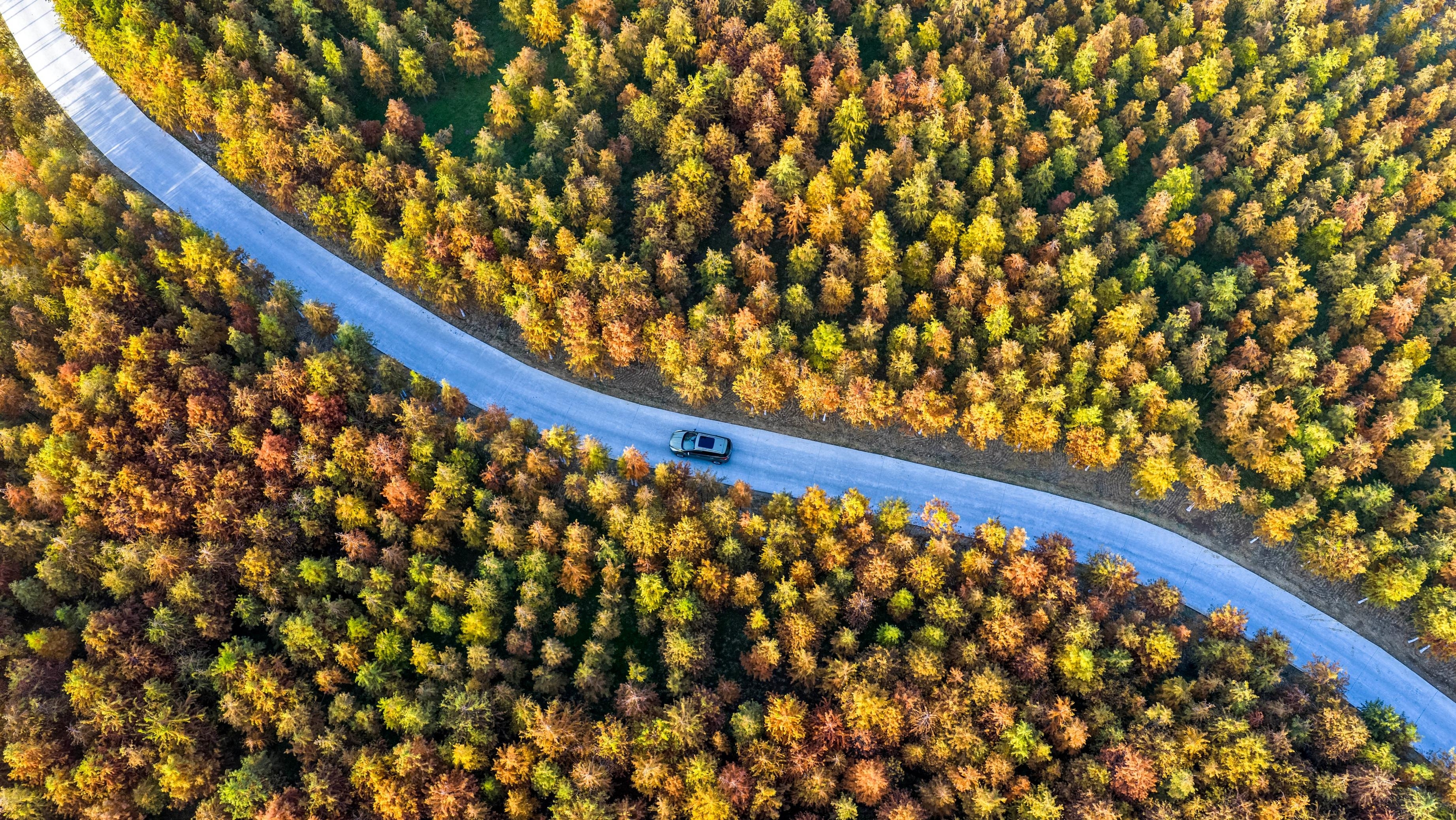 11月27日,游客在巢湖之滨的合肥红杉林中自驾游玩。初冬时节,位于合肥滨湖国家森林公园的千亩红杉林迎来最佳观赏期。这片绚丽的红杉胜景,已成为合肥市民休闲游玩、亲近自然的城市后花园。