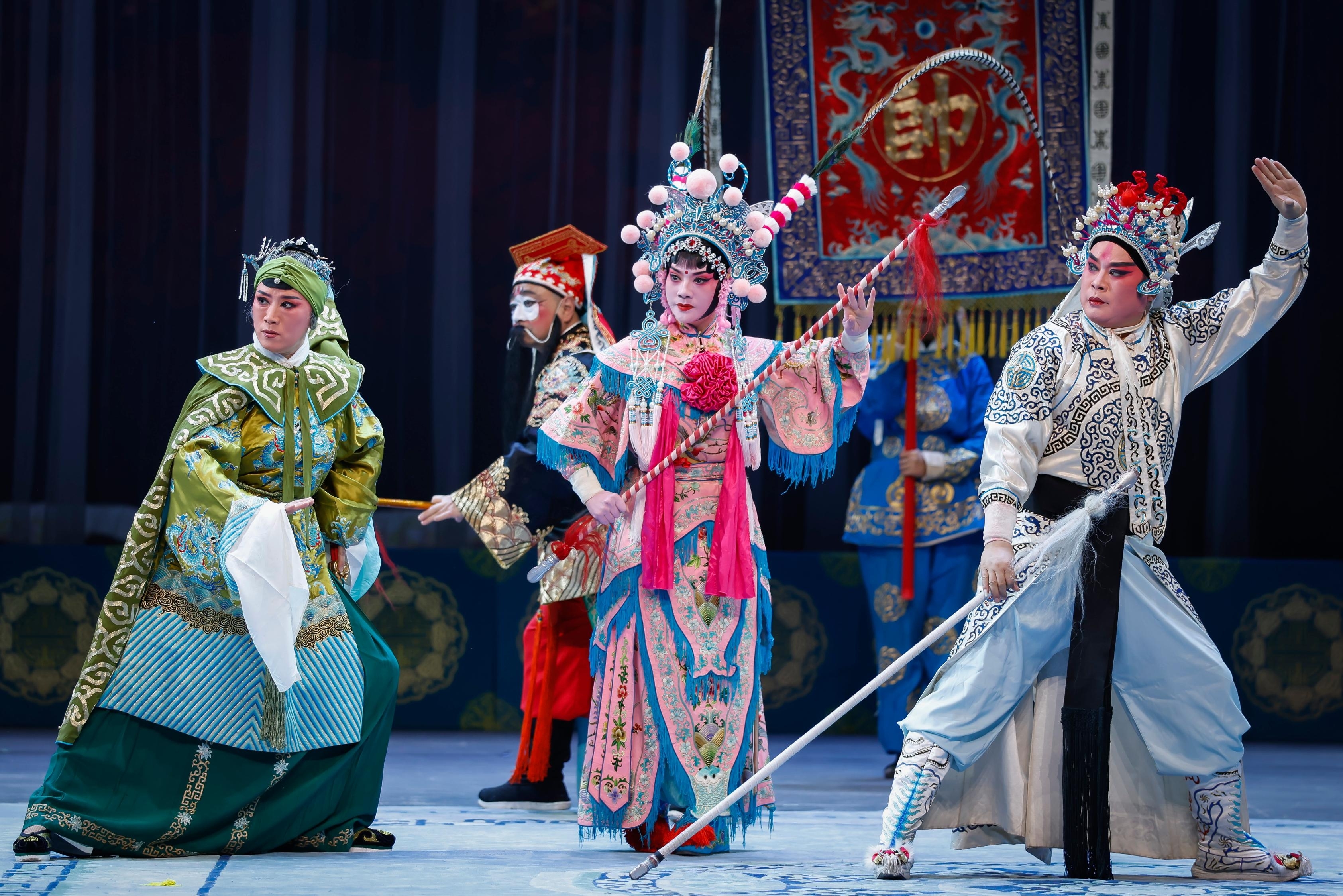 12月4日晚,“百戏入皖·星耀合肥”名家名角名剧惠民展演在安徽百戏城上演,泗州戏《樊梨花诉堂》以悠扬的“拉魂腔”唱腔,带领观众领略传统戏曲的独特魅力。图为《樊梨花诉堂》剧照。