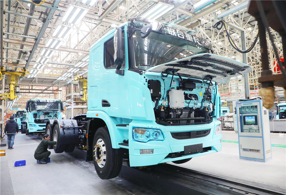12月16日,位于芜湖国家高新区的奇瑞商用车联合重卡总装车间,工人在生产电麒麟纯电牵引车。今年以来,奇瑞商用车联合重卡持续提升产品竞争力,呈现出产销两旺的势头。本报通讯员 程依宝 摄