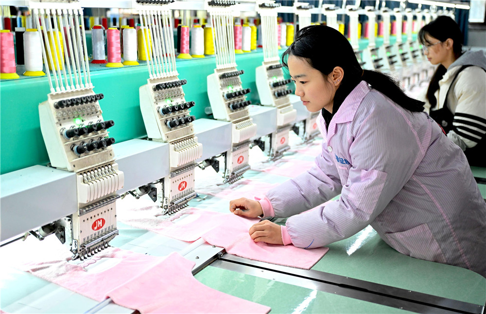 12月16日,在利辛县旧城镇一家母婴用品公司的生产车间,工人在生产订单。该企业产品销往北美、欧洲等国家和地区,带动当地200多人实现家门口就业增收。 本报通讯员 刘勤利 杨晴 摄