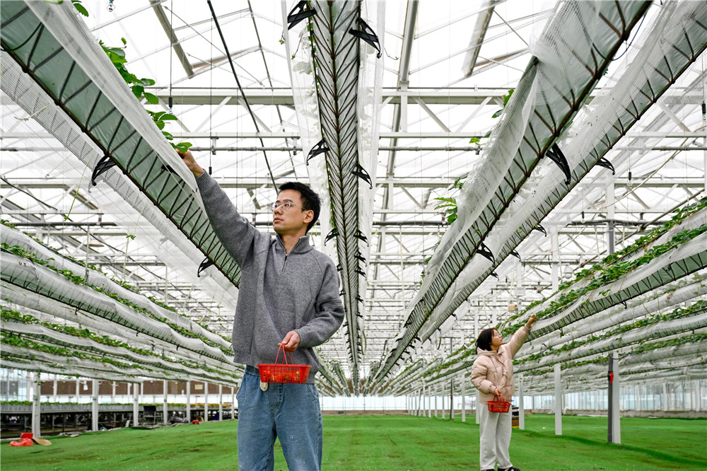 12月12日,在长丰县智慧农业谷数字草莓示范园,技术人员在培育草莓。近年来,长丰县不断提升农业农村数字化管理与服务水平,打造了一批集智能化种植和观光休闲于一体的生态农业综合体,推动智慧农业和乡村旅游融合发展,助力农业增效、农民增收。