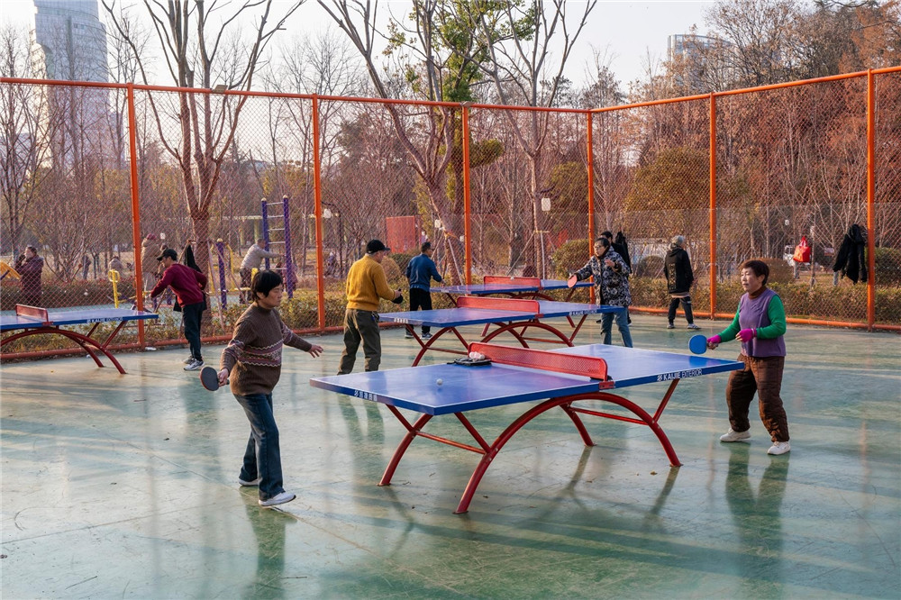 1月8日,在芜湖市镜湖区大砻坊街道北门口社区,市民在九莲塘公园里打乒乓球。原芜湖市缝纫机厂地块升级改造为九莲塘公园,成为居民家门口的锻炼好去处。本报通讯员 肖本祥 摄
