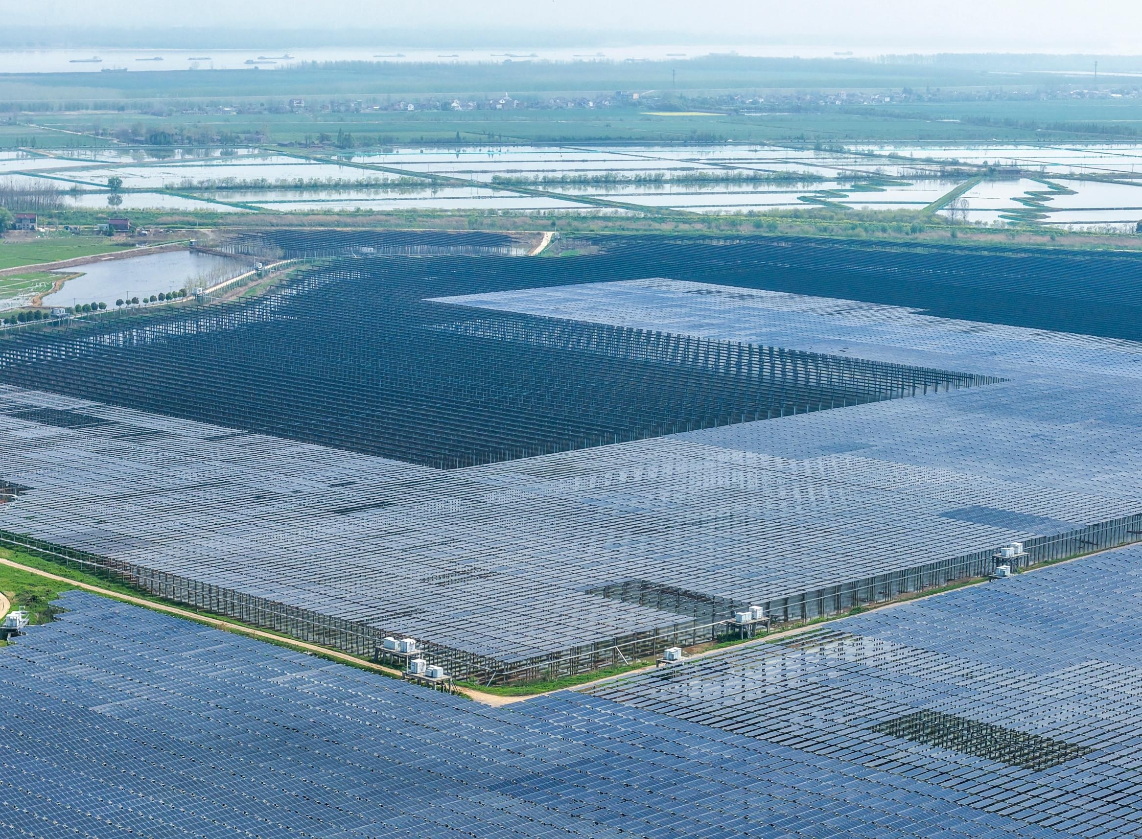 4月4日,无为市牛埠镇信义“渔光互补”光伏发电站,光伏板鳞次栉比。近年来,无为市因地制宜发展“渔光互补”光伏发电等项目。本报通讯员 鲁君元 摄