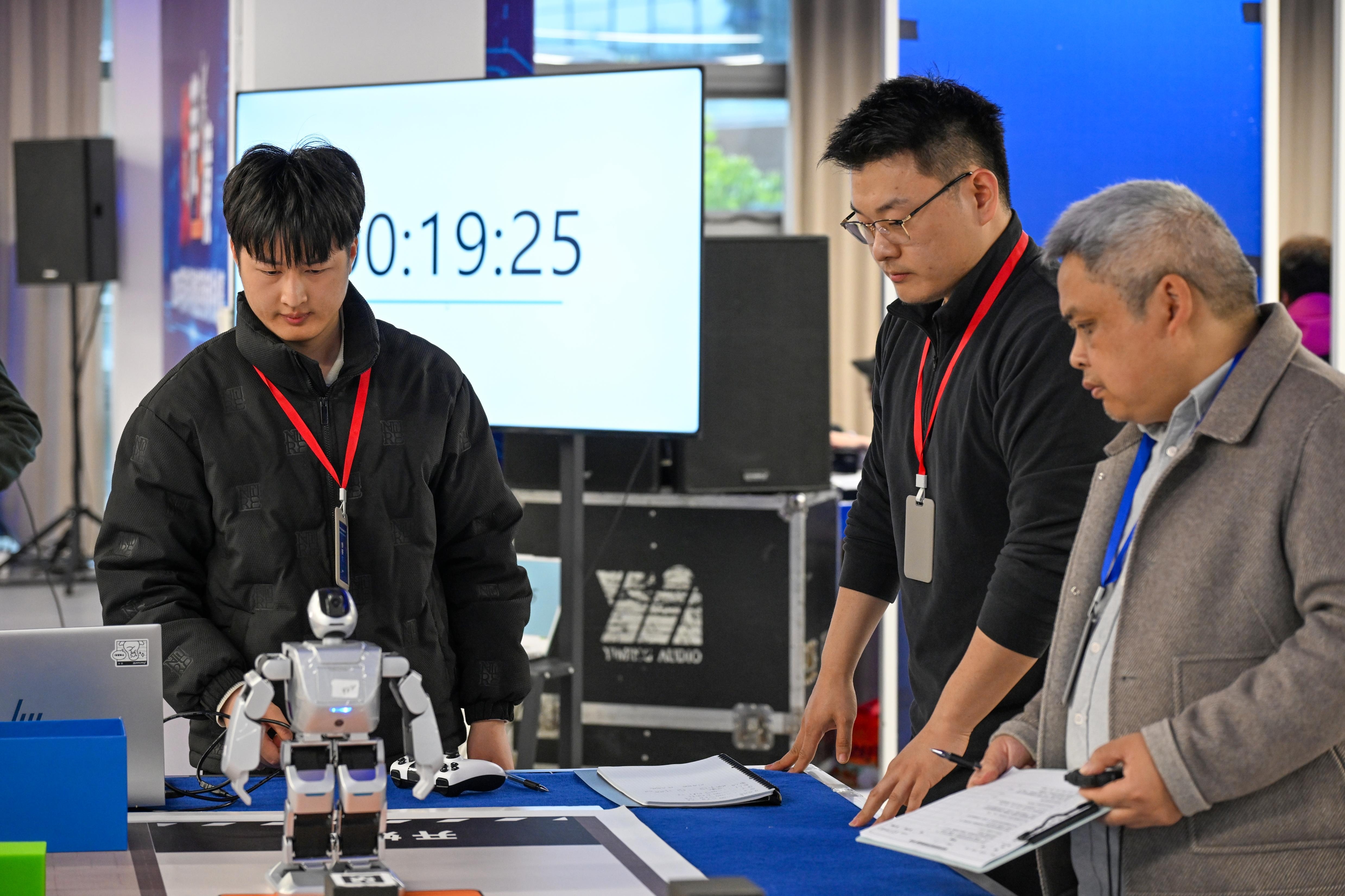4月11日,蒙城县第三届青少年机器人竞赛开赛。200多名青少年参加了数智竞技、机器人遥控足球、无人机足球等15个项目的竞赛,感受人工智能技术的魅力。本报通讯员 胡卫国 摄
