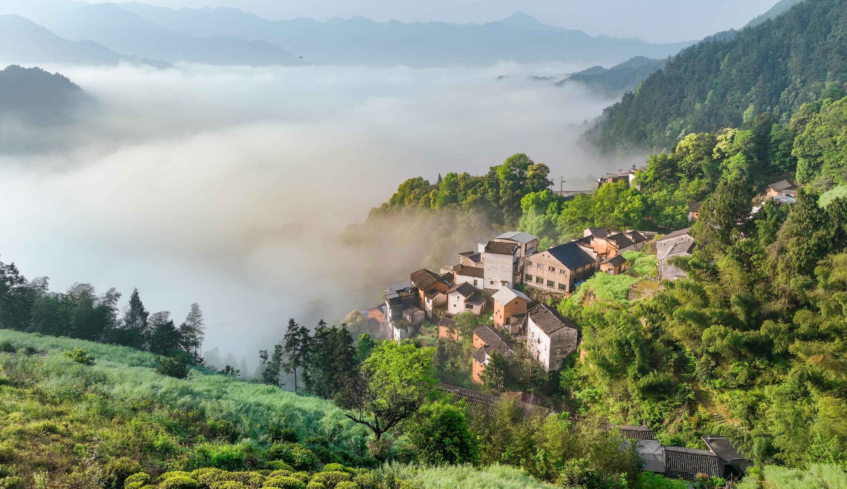 4月19日,歙县武阳乡约里村,晨雾漫绕青山,错落民居隐于翠绿间,尽显生态古村风貌。近年来,歙县通过推动传统村落活化利用,走出一条“保护促利用、利用强保护”的乡村振兴新路径。