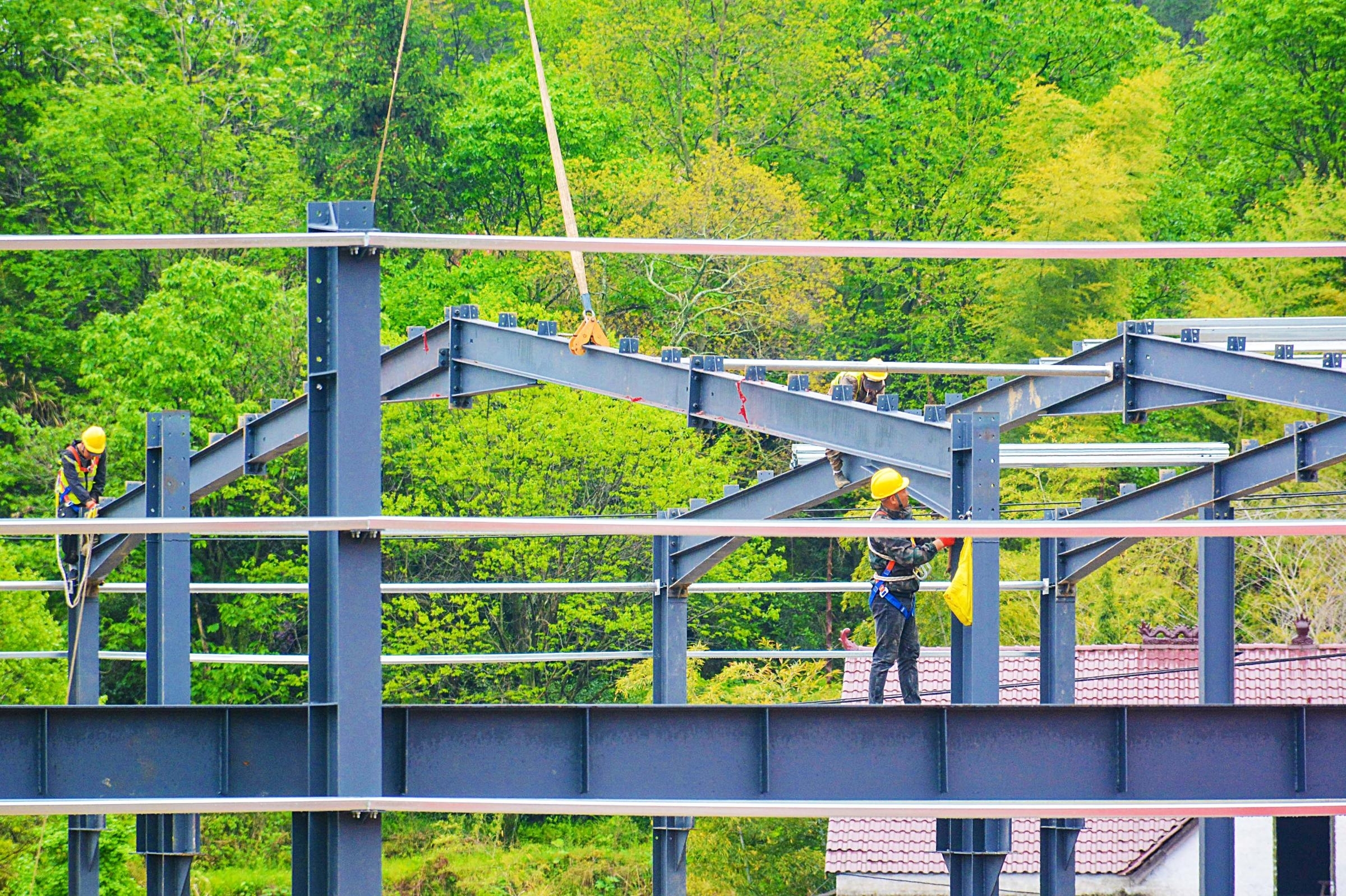 4月23日,在岳西县的六安至安庆铁路建设现场,工人们抢抓春季施工黄金期,有序推进项目建设。六庆铁路是大别山区振兴发展的重要基础设施,正线全长约170公里,设计时速250公里,项目建成后将进一步完善区域铁路网布局,推动区域协调发展。本报通讯员 吴均奇 摄