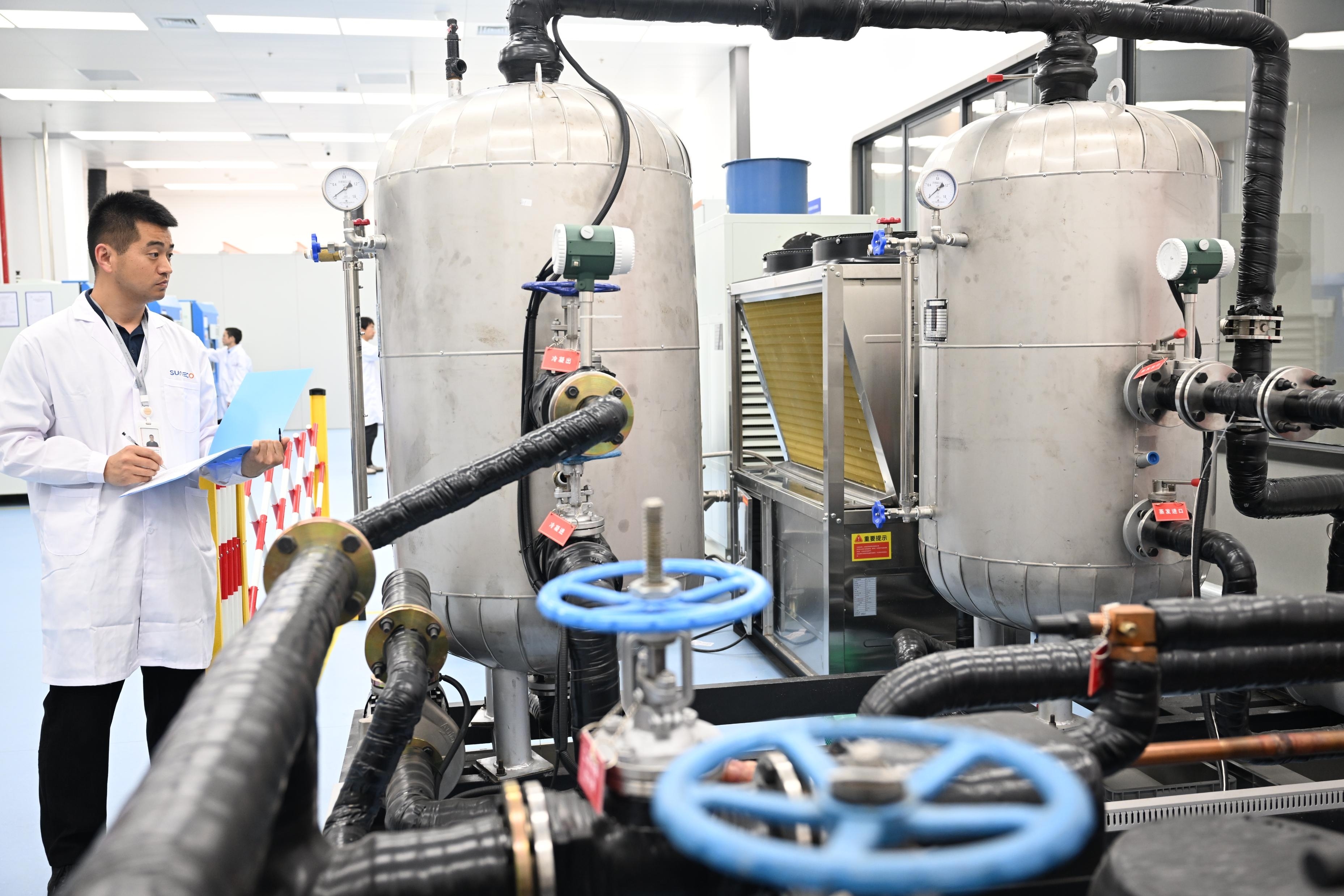 4月28日,在合肥零碳中心环境可靠性实验中心温湿度老化实验室,科研人员开展50kW宽压直流源高温测试。