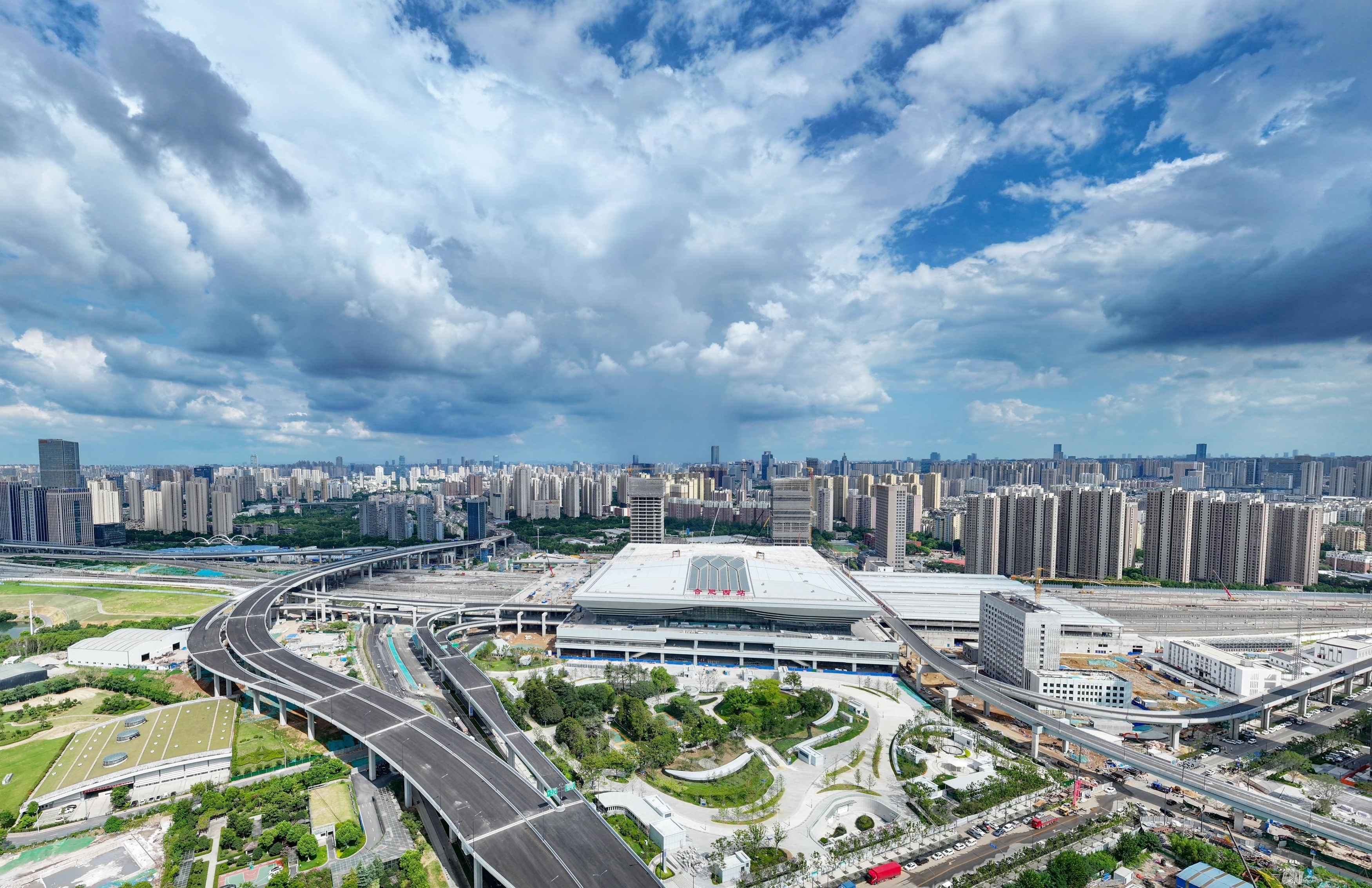 8月24日航拍的合肥市第六中学教育集团新桥校区。该校区采用生态化设计,配备全省领先的智慧教室、VRV空调系统和智能体育系统,是合肥市基础教育资源布局的重点项目,于近日投入使用。