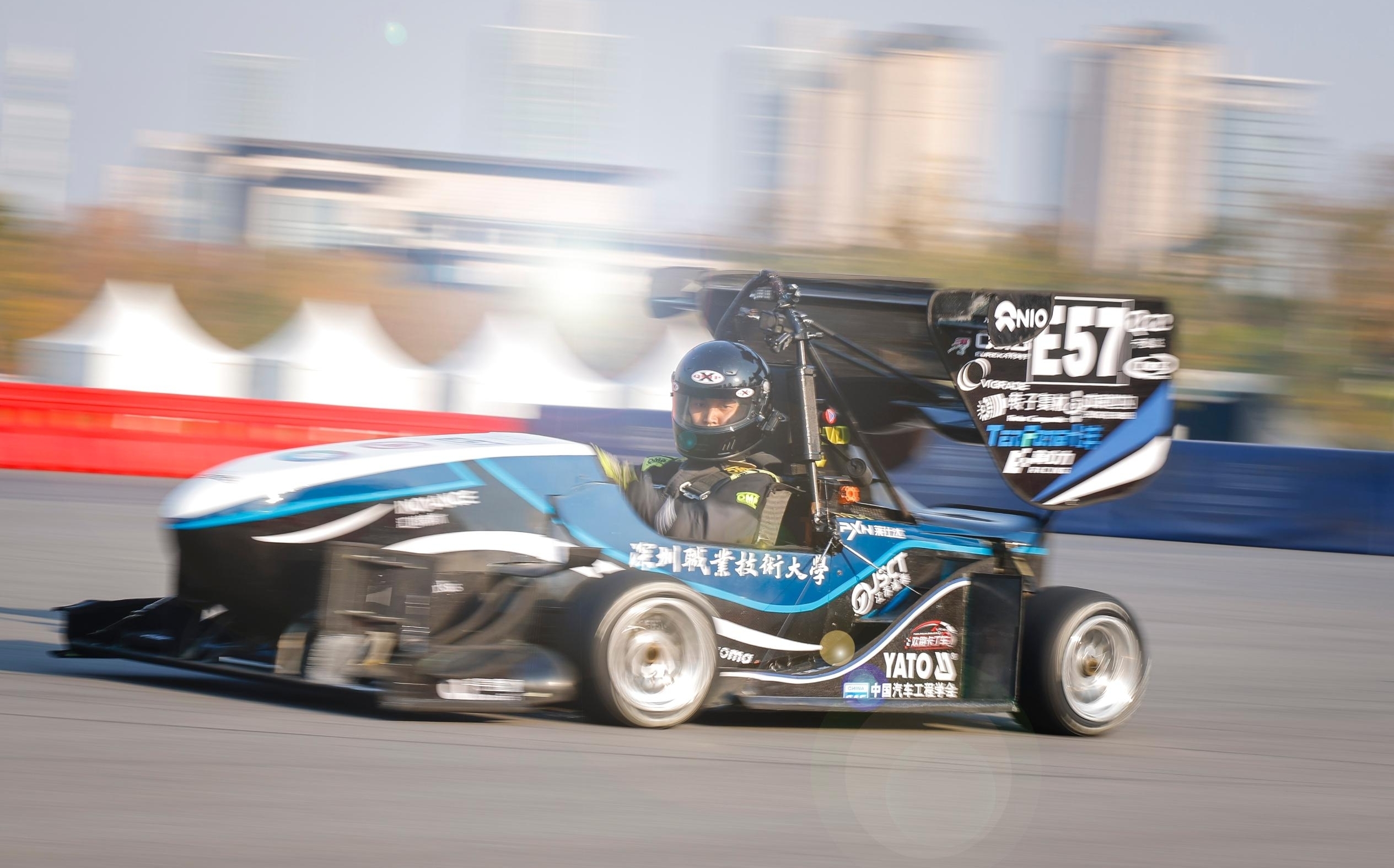 11月21日,车手在进行“8字”绕环比赛。当日,由中国汽车工程学会主办的2025中国大学生电动&无人驾驶方程式大赛在合肥市骆岗公园举行,百余支车队到场参赛。