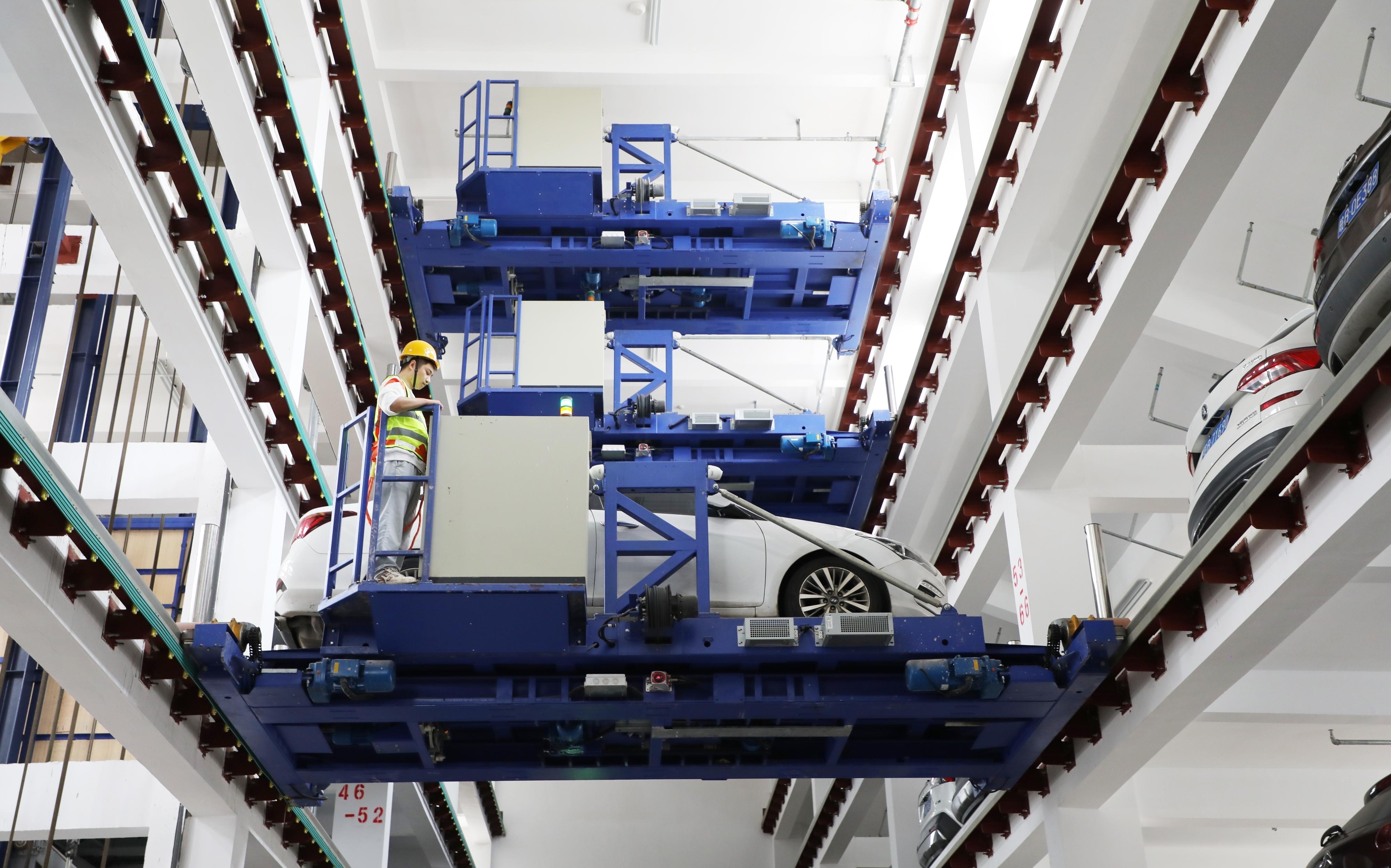 在芜湖陡门巷智能停车楼,当车主将车辆停进停车楼一层车位离开后,在自助操作屏点击“开始存车”,智能停车系统将通过校正、识别、分类等操作,按序把车辆整齐停放入位。车主取车时也只需点击“开始取车”,输入车牌号,便可快速完成取车。