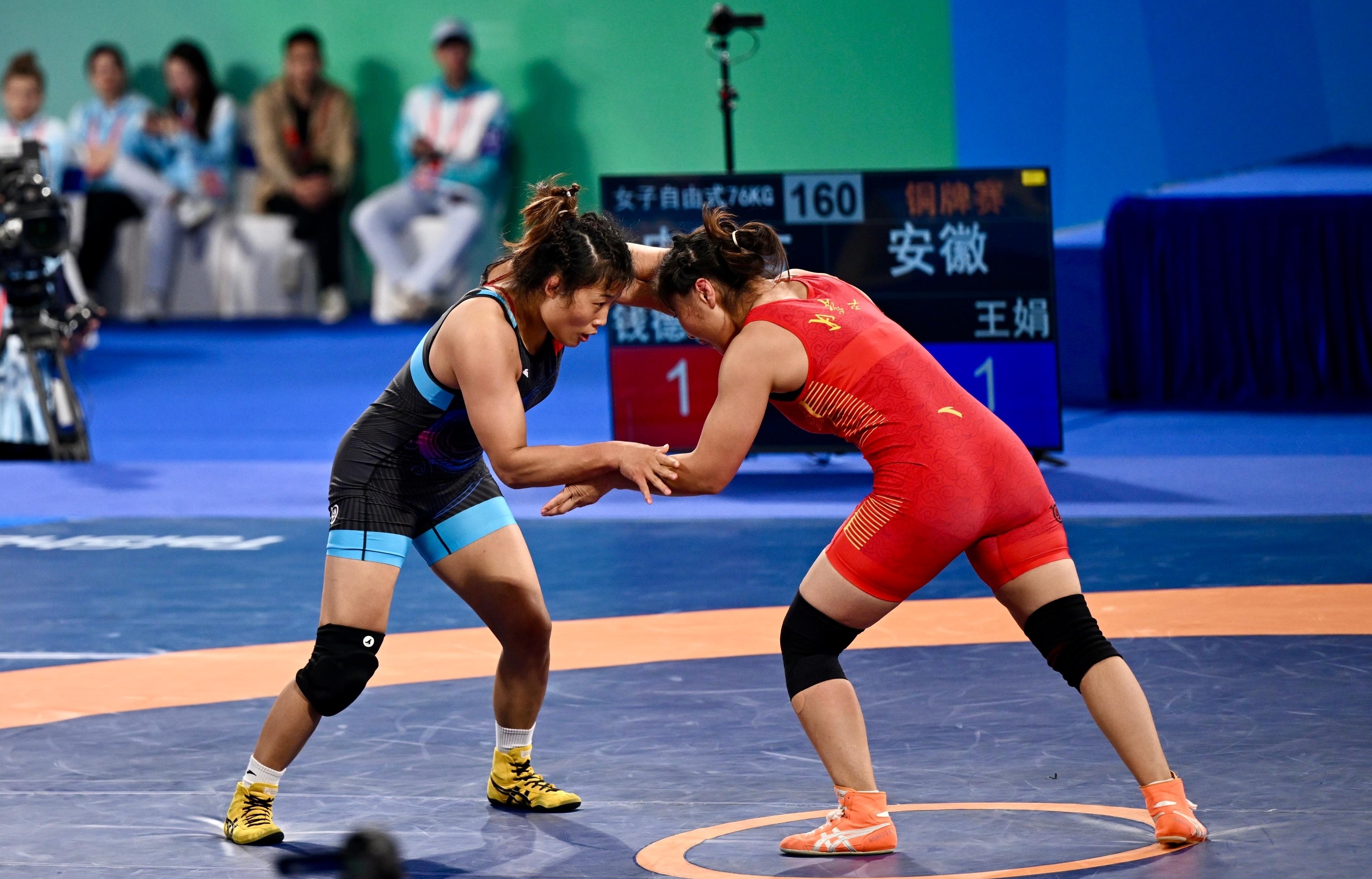 11月11日,第十五届全国运动会摔跤女子自由式76公斤级比赛在广东清远举行,老将王娟顶住压力、力克强敌,为安徽拼得一枚铜牌。