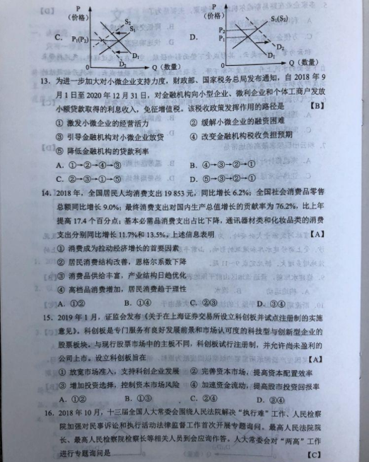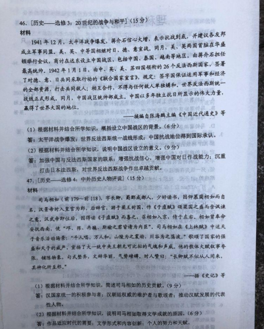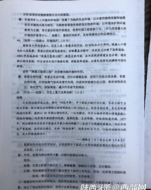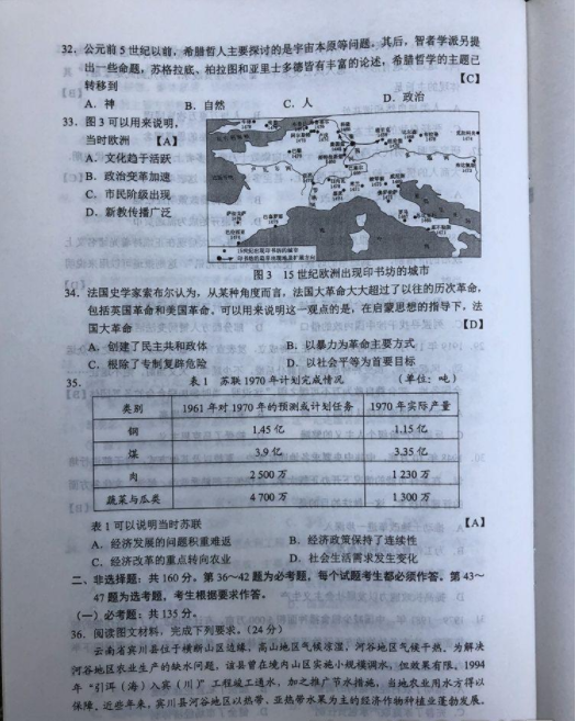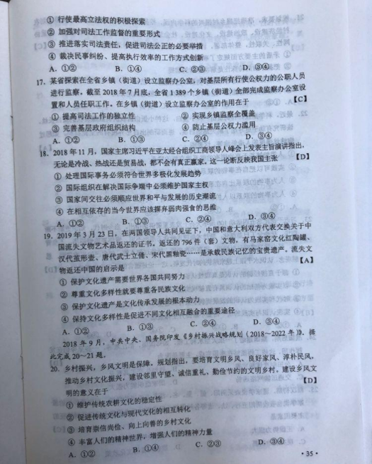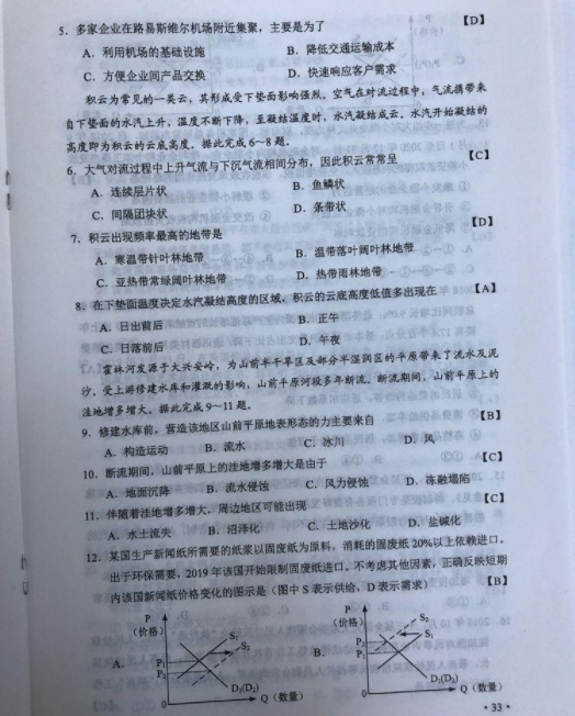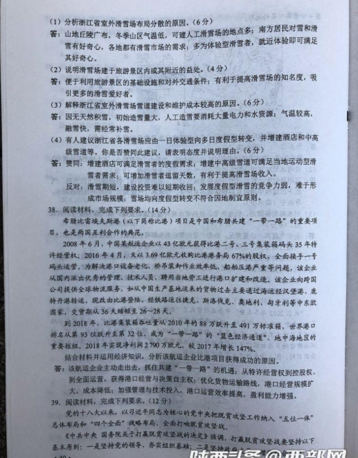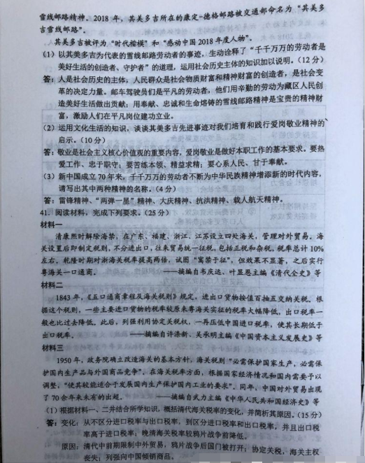 2019高考全国卷2(甲卷 全国二卷)文综真题及标准答案(官方超清版)