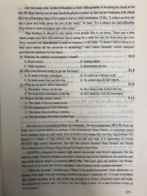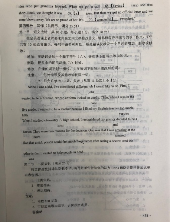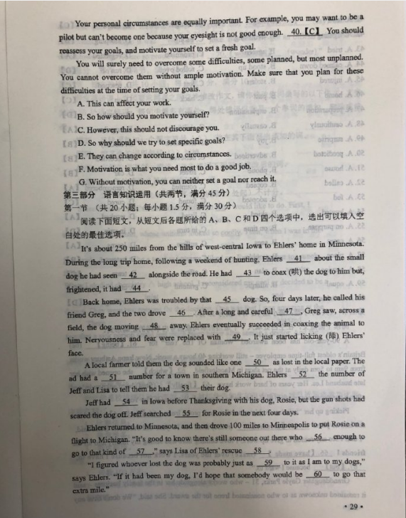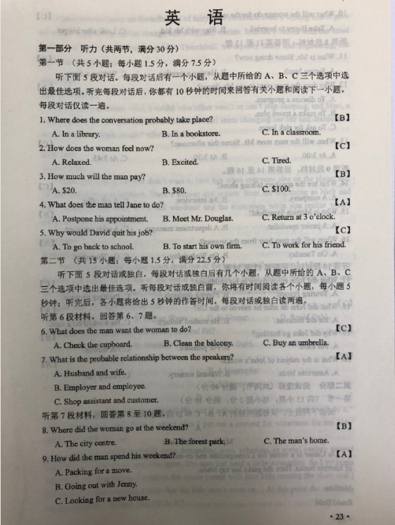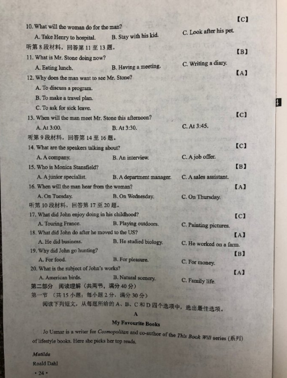 2019高考全国卷2(甲卷 全国二卷)英语真题及标准答案(官方超清版)