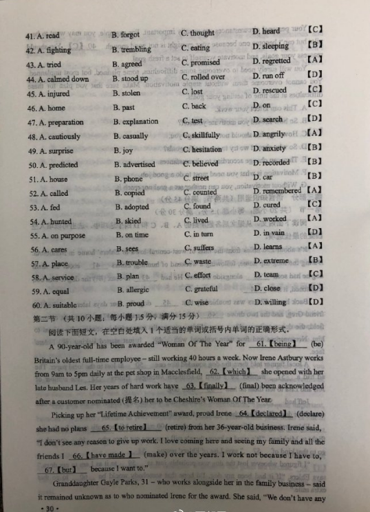 2019年高考英语全国卷2(全国II、甲卷)真题试卷题目与标准答案已公布。考生可查看2019年高考英语全国卷II(全国二、甲卷)答案解析图片内容!预祝所有考生取得好成绩!【其他科目试卷和答案】