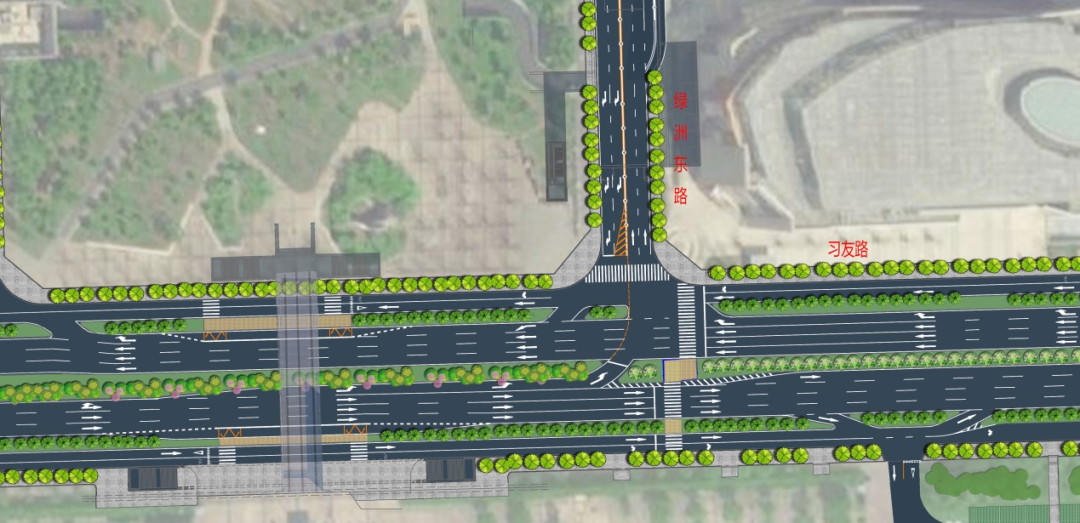 在路口交通优化方面,将增设习友路和潜山路交口人、非机动车慢行地下通道,并与万象城下沉广场衔接实现快慢分离,减少交通干扰;调整交口渠化,改善信号配时,提高交口通行效率。奥体中心北侧人行主出入口将增设南北向人行地下通道,封闭现习友路和潜山路交口西侧掉头口,增设习友路与绿洲东路西向北左转车道。在万佛湖路与绿洲东路、潜山路交口处新增信号灯。