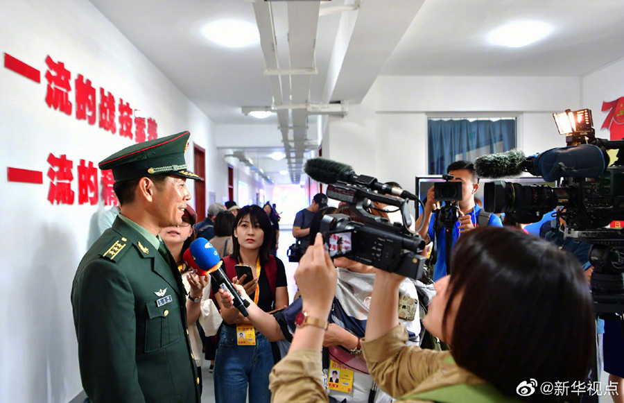 观摩徒步方队和联合军乐团训练,参观阅兵部队宿舍,与仪仗方队和维和部队方队官兵对话……阅兵集训点有啥故事?快来跟着中外记者一探究竟。(新华社记者 魏培全 摄)