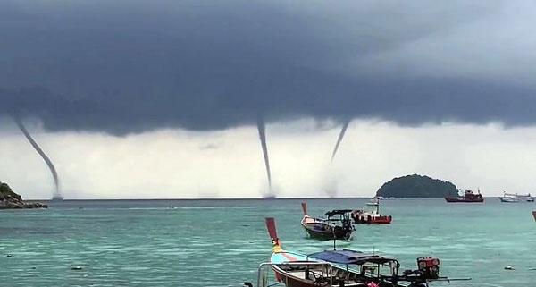 当地气象预报局发言人素拉蓬·萨拉帕(Surapong Sarapa)解释说:“在安达曼海岸的雨季,水龙卷是非常常见的,但是同时出现四个实属奇观。”