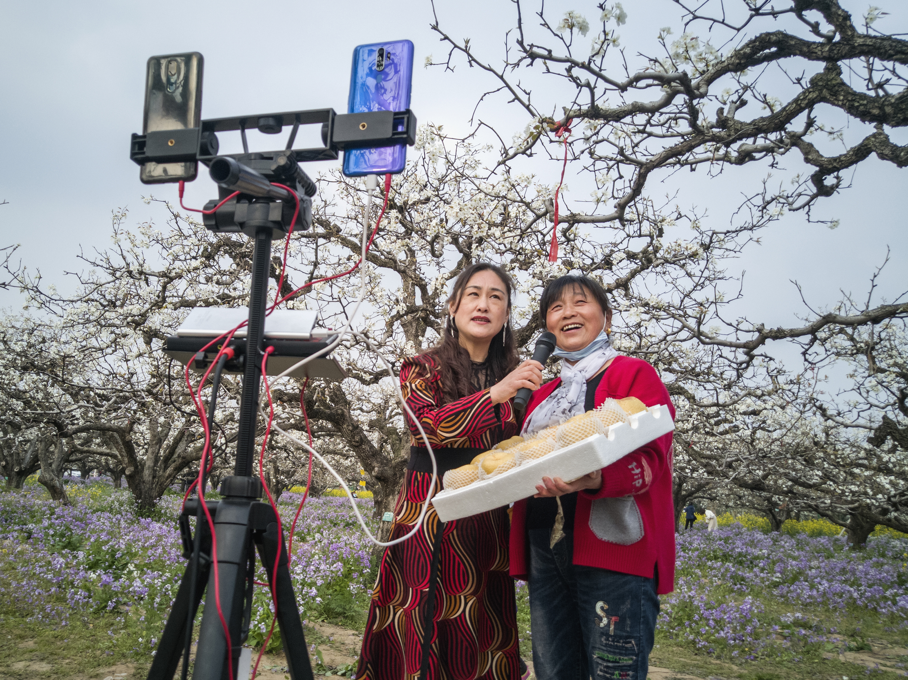 疫情催化直播带货“全面上位”,解决农产品滞销。图为宿州市农场创新工作思路,把线上流量转化为线下销售量,网上直播销售农产品。