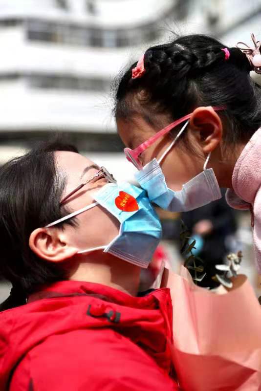 4月14日,安徽首批支援湖北医疗队医务人员结束隔离休整,与家人团聚。