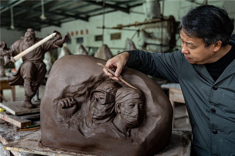 安徽省工艺美术大师,中国高级工艺美术师,非遗生漆夹纻省级传承代表人,著名雕塑家徐建武, 以艺术家特有的表达方式参与抗“疫”,用生漆夹纻技艺完美塑造了一尊尊抗疫“逆行者"的光辉形象。用他的作品鼓舞抗疫斗志,坚定抗疫信心,为武汉加油!为中国加油!