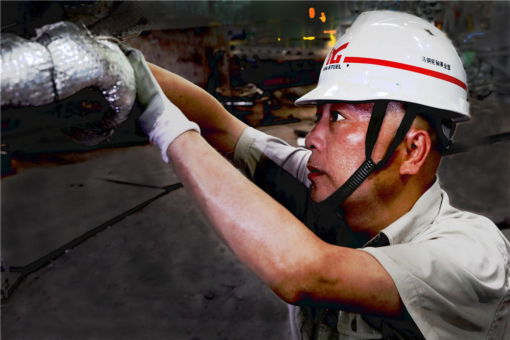 在马钢交材热处理现场高温热浪检修员工奋战一线