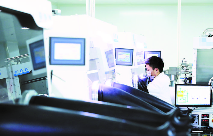 ○新型显示产业科研人员正在进行研发