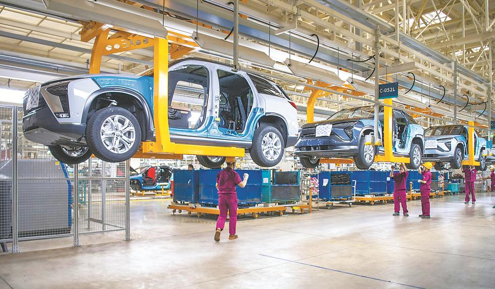 10月25日,江淮蔚来先进制造基地生产线,工人们正在组装新能源汽车。江淮新能源汽车1月至9月累计销售9.0万辆,同比大幅增长190.5%。 记者 李博 摄