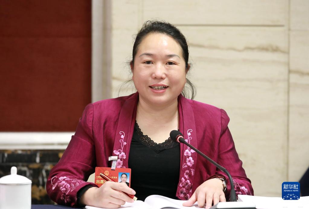 全国人大代表雷燕琴在审议时发言。新华社记者 熊争艳 摄