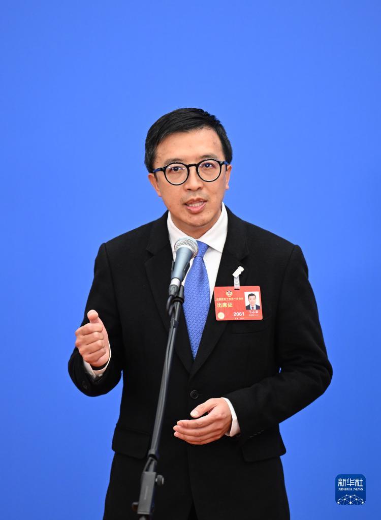3月7日,全国政协十四届一次会议第二场“委员通道”集体采访活动在北京人民大会堂新闻发布厅举行。这是全国政协委员马志毅接受媒体采访。新华社记者 陈晔华 摄