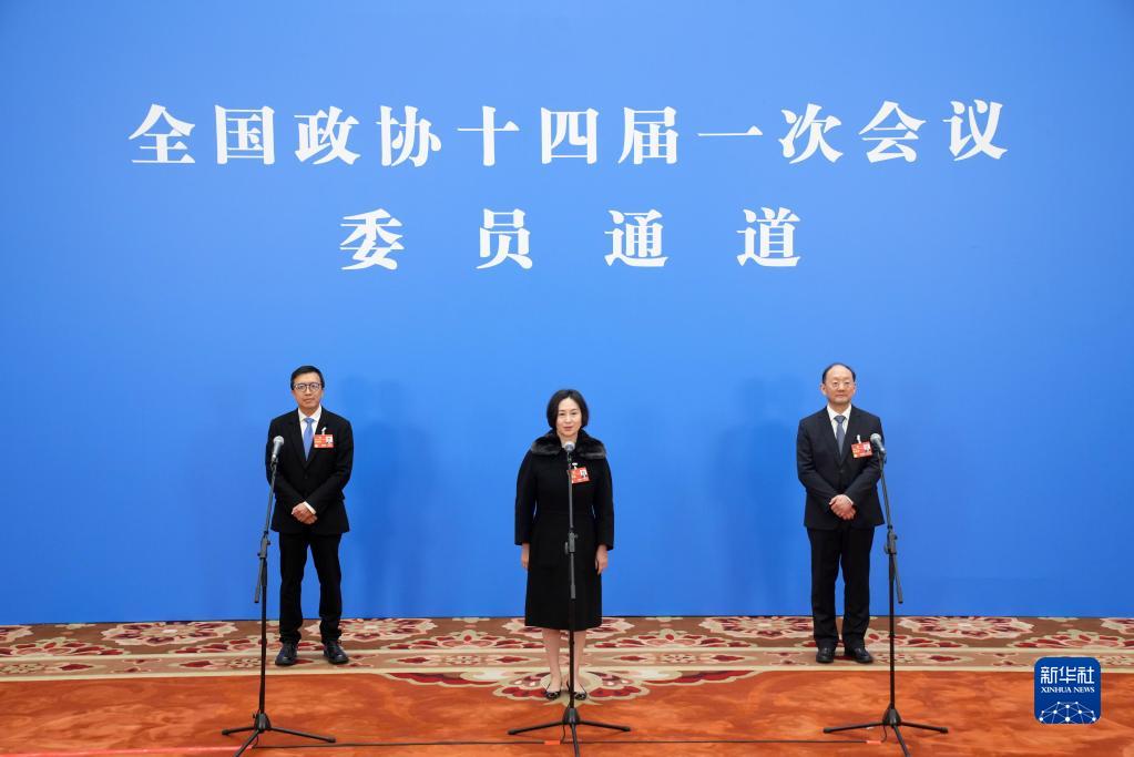 3月7日,全国政协十四届一次会议第二场“委员通道”集体采访活动在北京人民大会堂新闻发布厅举行。新华社记者 陈晔华 摄