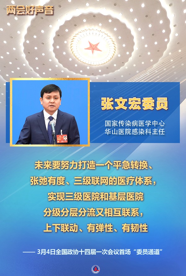 国家传染病医学中心华山医院感染科主任张文宏委员认为,现在是继续强化基层医疗卫生体系一个非常好的时间节点。他建议说,未来要努力打造一个平急转换、张弛有度、三级联网的医疗体系,实现三级医院和基层医院分级分层分流又相互联系,上下联动、有弹性、有韧性。