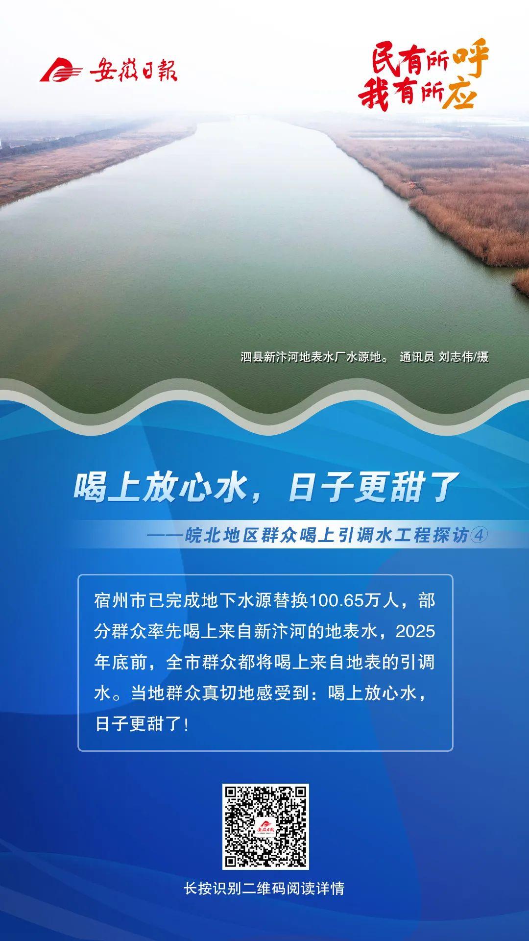 宿州市水利局农饮站负责人介绍,目前,该市已完成地下水源替换100.65万人,部分群众率先喝上来自新汴河的地表水,2025年底前,全市群众都将喝上来自地表的引调水。