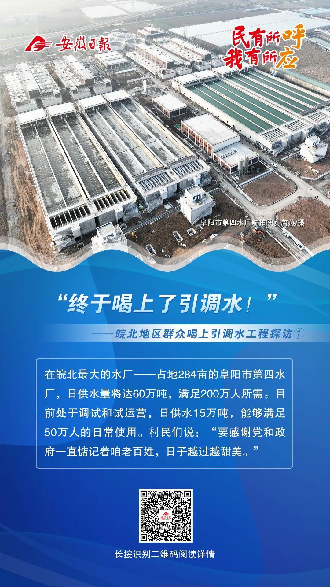 2023年12月21日,引江济淮工程阜阳加压泵站启动,将来自长江的清水,通过茨淮新河引入原水管道,随后流入新建的阜阳市第四水厂。