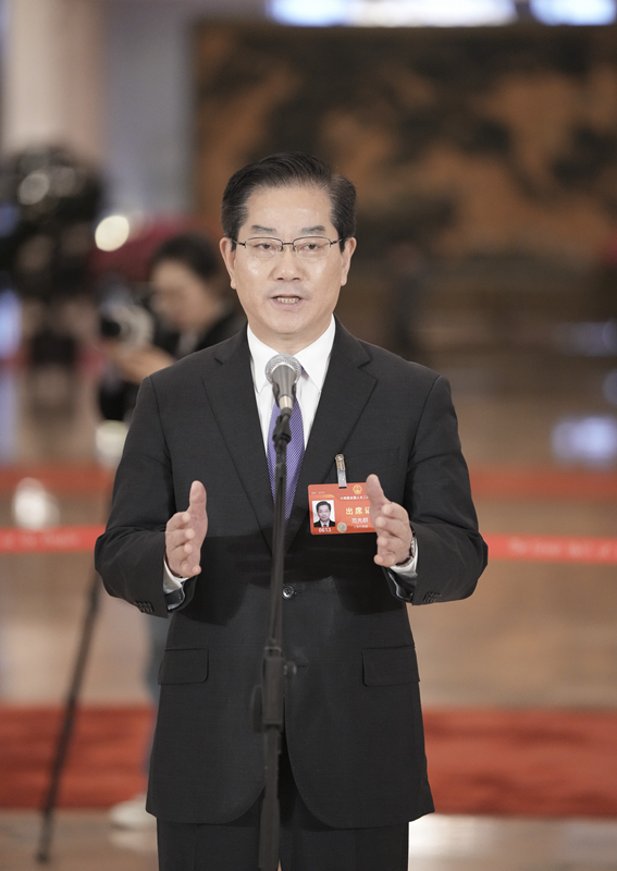 3月8日,第十四届全国人民代表大会第二次会议第二场“代表通道”集中采访活动在北京人民大会堂举行。这是全国人大代表王永澄接受媒体采访。