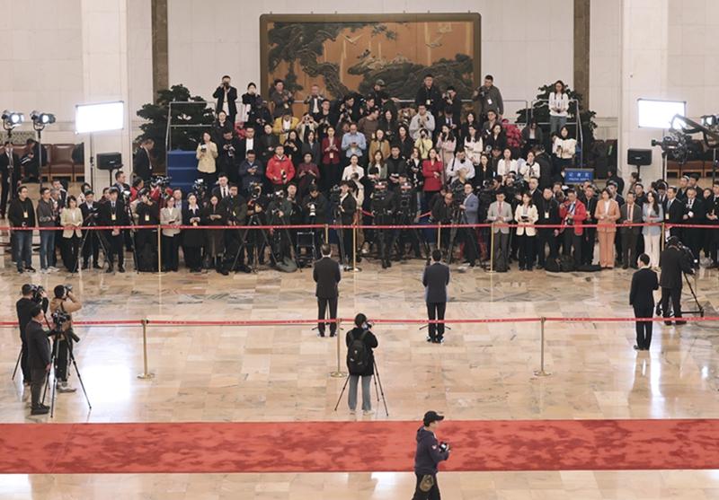 3月8日,第十四届全国人民代表大会第二次会议第二场“代表通道”集中采访活动在北京人民大会堂举行。
