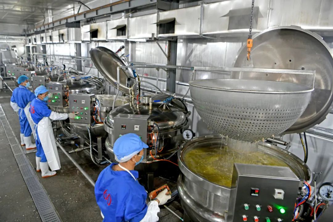 除了现场品尝,淮南牛肉汤也有了速食版。在速食牛肉汤企业生产车间里,煮熟入味后的牛肉会被切片分装,经过一系列工艺流程,一袋袋配料丰富的淮南牛肉汤走下生产线。