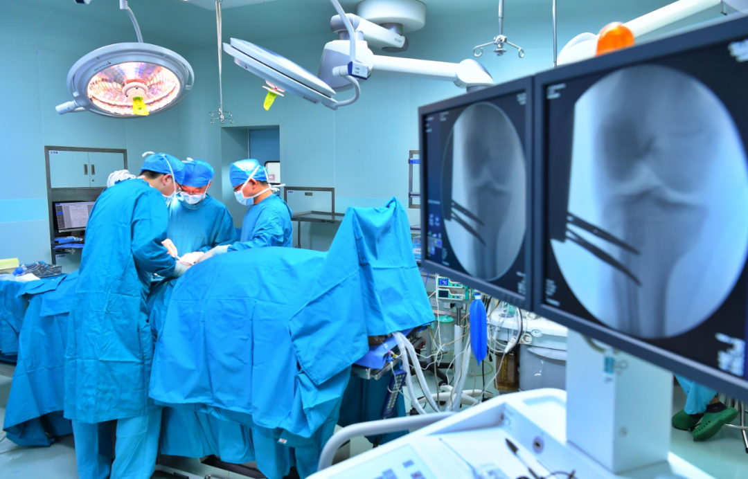蚌医大一附院手术室内,浙大二院骨科专家林鹏(中)在进行骨肿瘤手术。程兆/摄