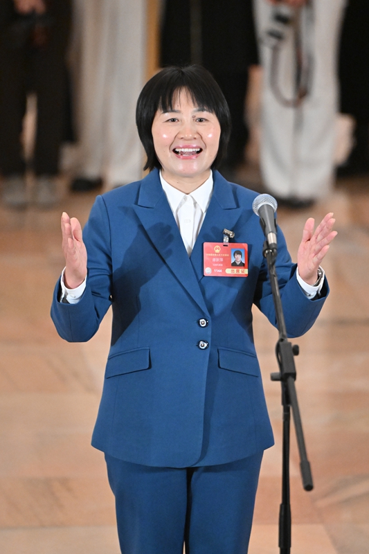 3月11日,第十四届全国人民代表大会第三次会议第三场“代表通道”集中采访活动在北京人民大会堂举行。这是全国人大代表谭新萍接受媒体采访。