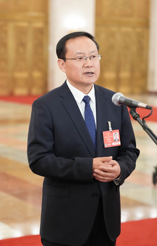 3月11日,第十四届全国人民代表大会第三次会议第三场“部长通道”集中采访活动在北京人民大会堂举行。这是自然资源部部长关志鸥接受媒体采访。