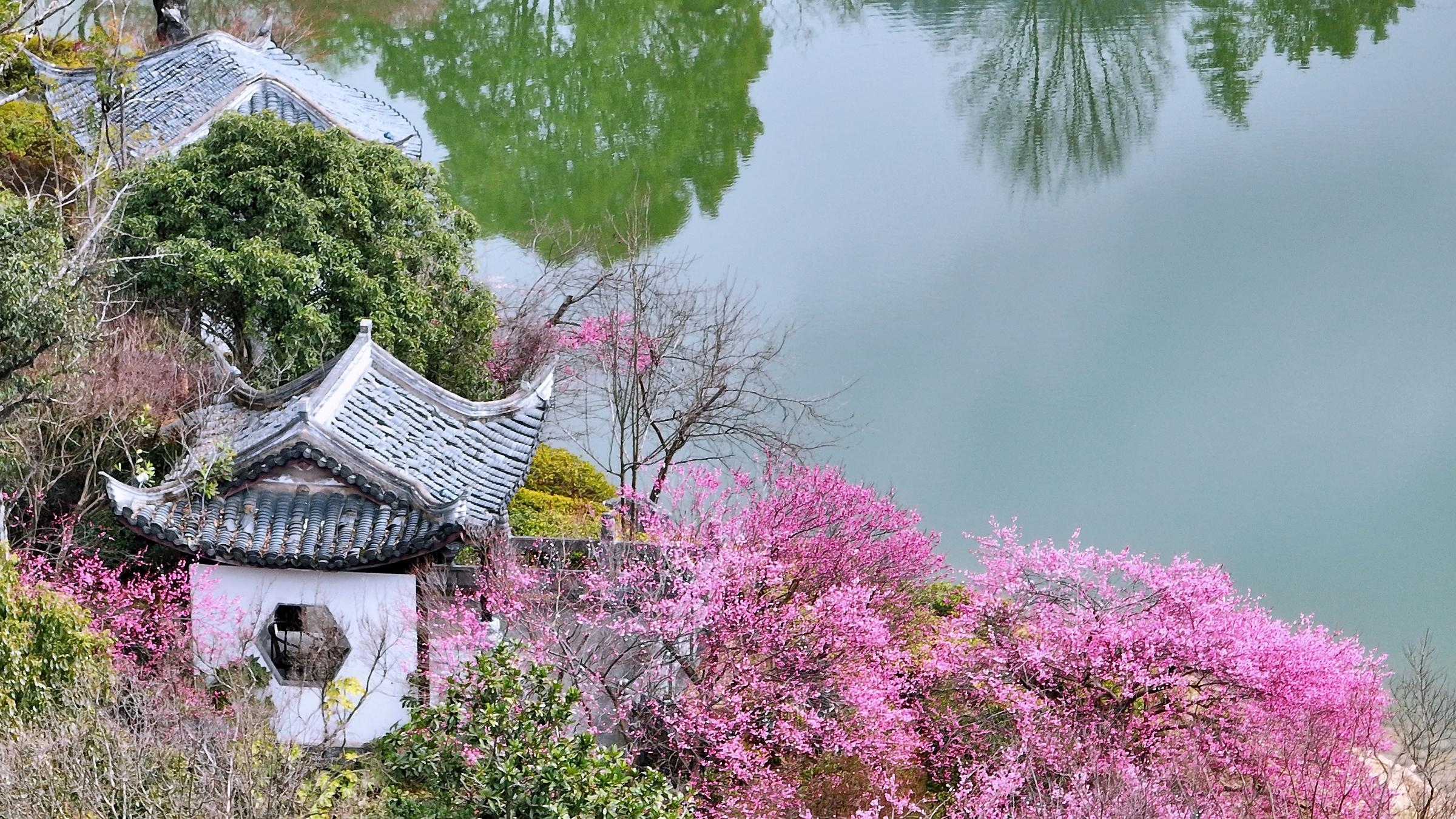 早春时节,歙县雄村镇的卖花渔村,被一场盛大的“花事”点燃。漫山遍野的梅花如云似霞,粉墙黛瓦的徽派村落浸入一片香雪海。
