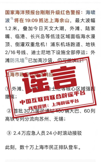 辟 谣 上海一男子因编造不实信息引发公众议论恐慌,已被行拘!