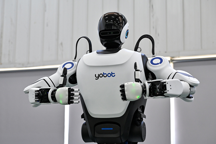 2025年7月3日,在位于安徽省芜湖市的埃夫特智能机器人股份有限公司内,一款人形机器人在做手势。新华社记者张铖 摄