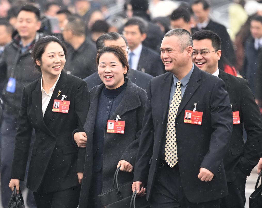 3月5日上午,第十四届全国人民代表大会第四次会议在北京人民大会堂开幕。这是全国人大代表走向会场。