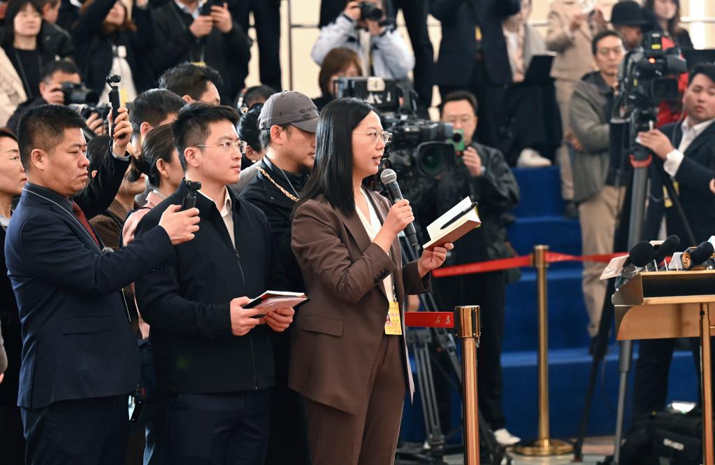 3月9日,第十四届全国人民代表大会第四次会议第二场“部长通道”集中采访活动在北京人民大会堂举行。这是记者在现场提问。新华社记者 蔡湘鑫 摄