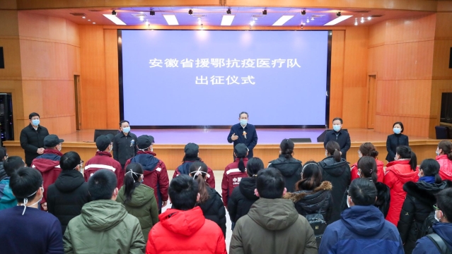 肩负着深入学习贯彻习近平总书记关于做好疫情防控工作重要讲话和重要指示精神的职责使命,带着安徽人民对湖北人民的深情厚谊,1月27日上午,安徽省援鄂抗疫医疗队出征仪式在合肥举行。她表示,一定牢记使命、不负重托,积极投身抗击疫情的防控和重症病人的救治,圆满完成省委、省政府交付的光荣任务,充分展现新时代安徽人民的责任担当和精神风貌。省委书记、省新型冠状病毒感染的肺炎疫情防控工作领导小组组长李锦斌出席仪式并讲话。