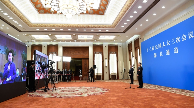 十三届全国人大三次会议22日在北京开幕,首场“代表通道”于会前举行。六位来自中国基层的全国人大代表与身处大会新闻中心驻地分会场的媒体记者视频连线,讲述各自的代表故事。