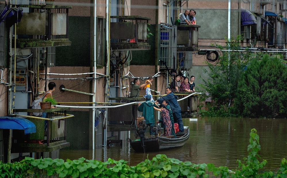 2020.7.19拍摄于安徽省白湖农场大水围困下的小区救援现场。