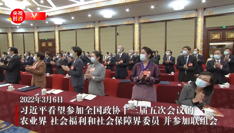 3月6日,中共中央总书记、国家主席、中央军委主席习近平看望参加全国政协十四届一次会议的民建、工商联界委员,并参加联组会,听取意见和建议。中共中央政治局常委、全国政协十四届一次会议主席团会议主持人王沪宁,中共中央政治局常委蔡奇、丁薛祥参加看望和讨论。