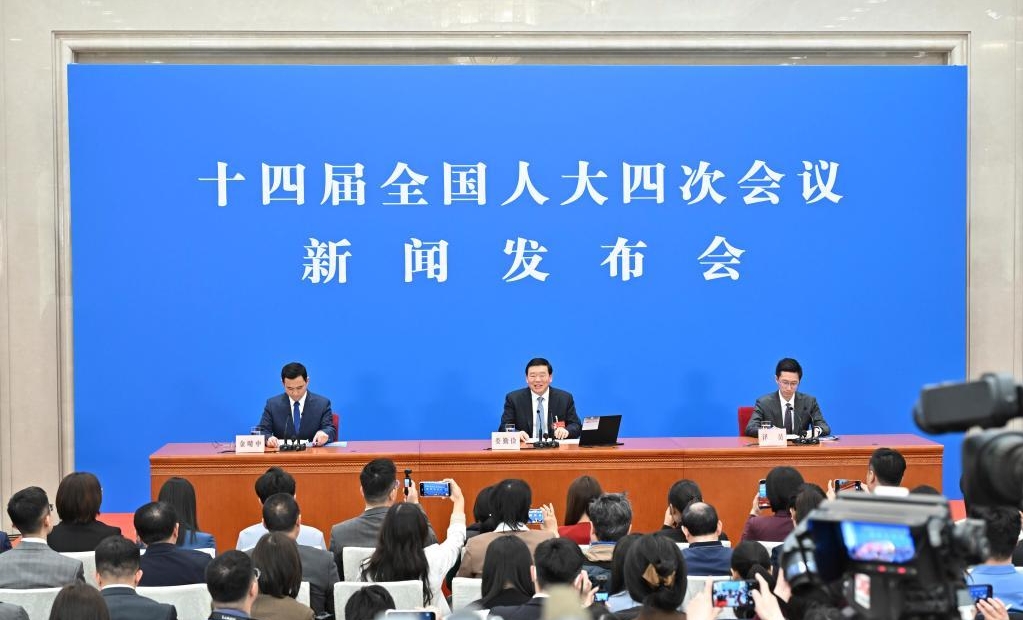 3月4日,十四届全国人大四次会议在北京人民大会堂举行新闻发布会。大会发言人娄勤俭就大会议程和人大工作相关问题回答中外记者提问。